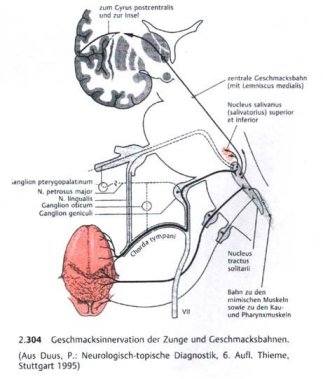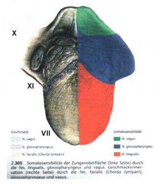 Der N.vagus und der N.trigeminus führen zu den wenigen Knospen des Gaumen-